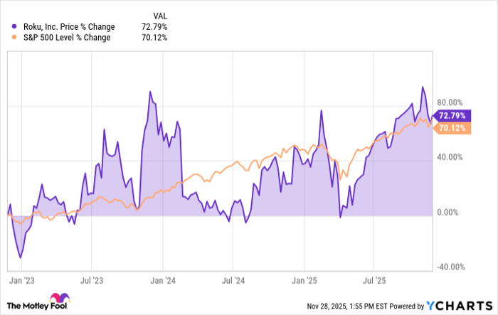 Key Points Roku’s stock is up 73% over three years, roughly matching the S&P 500’s gains despite massive volatility along the way. Patient investors who …