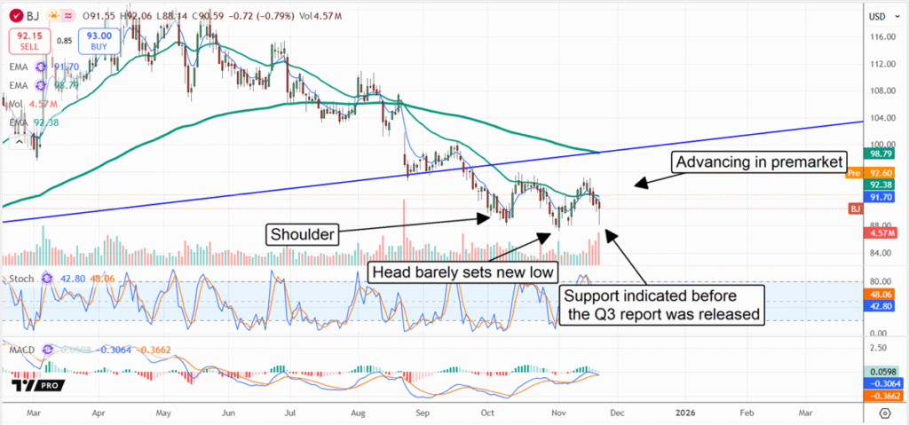 BJ’s Wholesale Club’s stock price is set up for a bullish market reversal that could push it to $120 or higher, representing 33% upside from …
