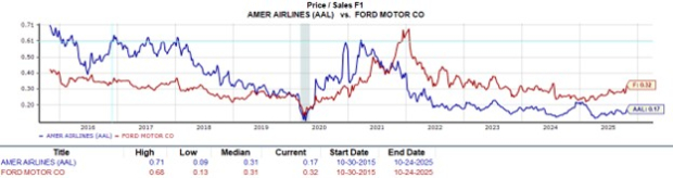 Ford’s 12X forward earnings multiple also stands out at a slight discount to its auto peers and is well below the benchmark’s 26X. American Airlines, on the other hand, trades at 41X forward earnings, an elevated premium to the broader market and its Zacks Transportation-Airline Industry average of 10X. Still, American Airlines’ raised EPS guidance should start to rectify its inflated P/E valuation.