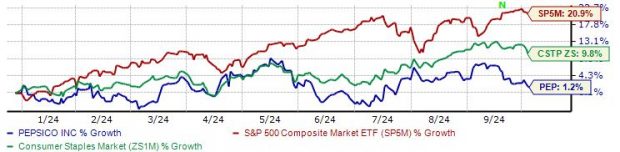 An intriguing illustration showcasing the year-to-date movement of PEP shares compared to the Zacks Consumer Staples sector and the S&P 500 offers a visual representation of the stock’s performance trends.