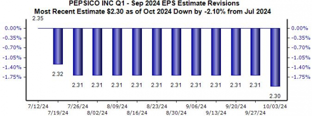 Over recent months, analysts have tempered their expectations for PepsiCo’s upcoming quarter. The Zacks Consensus EPS estimate of $2.30 has dwindled by 2% since mid-July, signifying a 2.2% upswing from the corresponding period last year.