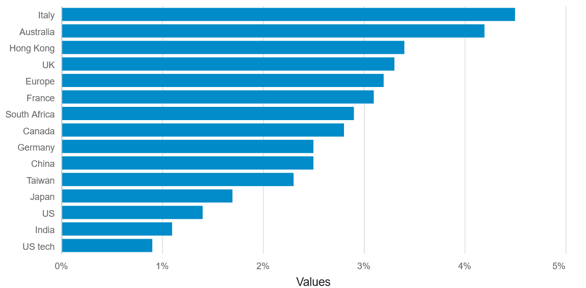 The UK market is a compelling story for foreign capital. It has the fifth-lowest price-to-earnings ratio of key markets and the fifth-lowest price-to-book ratio. It has the fourth-highest dividend yield, which is a lucrative opportunity in the rate-cutting environment.